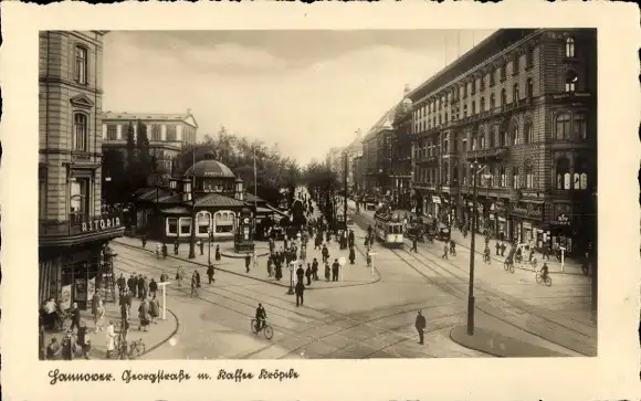 Ak Hannover in Niedersachsen, Café Kröpcke, Georgstraße, Straßenbahn