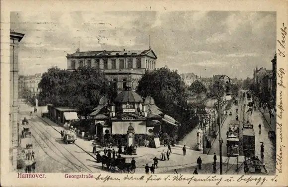 Ak Hannover in Niedersachsen, Georgstraße, Cafe Kröpcke, Straßenbahn