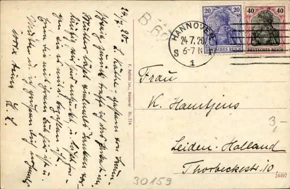 Zustand, siehe Scan, gelaufen, 1920 - ca 14 cm X 9 cm