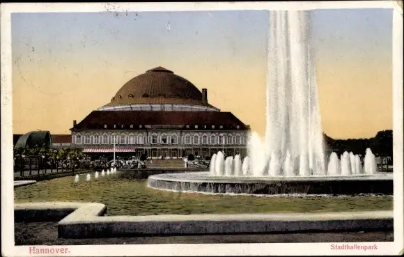 Ak Hannover in Niedersachsen, Stadthallenpark, Springbrunnen, Fontäne