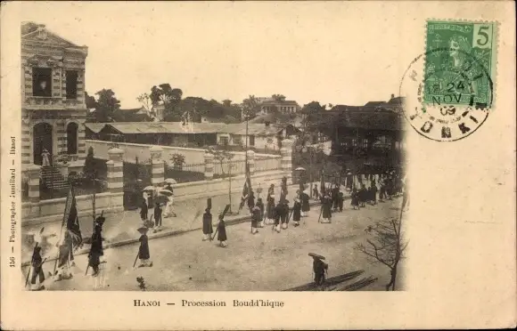 Ak Hanoi Tonkin Vietnam, Procession Bouddhique