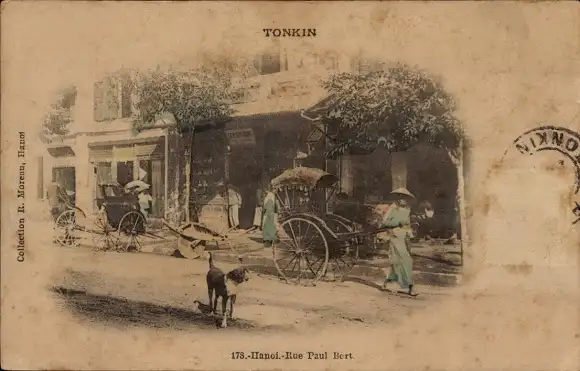 Ak Hanoi Tonkin Vietnam, Rue Paul Bert, Rikscha
