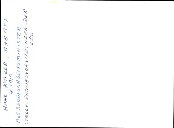 Ak Hans Katzer, CDU, Politiker, Portrait, Autogramm