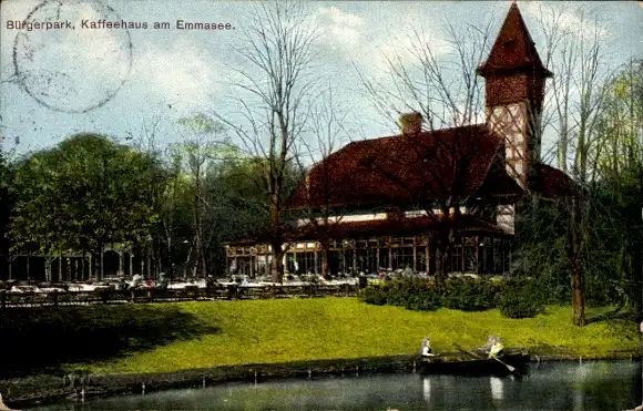Ak Hansestadt Bremen, Bürgerpark, Kaffeehaus, Emmasee, Ruderboot