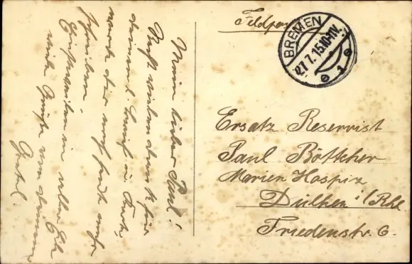 Zustand, siehe Scan, gelaufen, 1915 - ca 14 cm X 9 cm