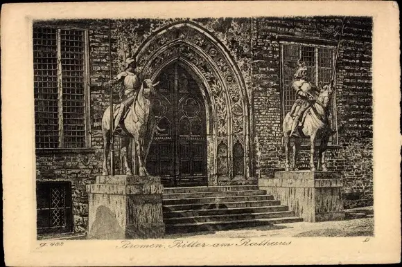 Ak Hansestadt Bremen, Ritter am Rathaus, Eingangsportal