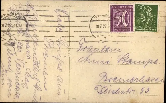 Zustand, siehe Scan, gelaufen, 1922 - ca 14 cm X 9 cm