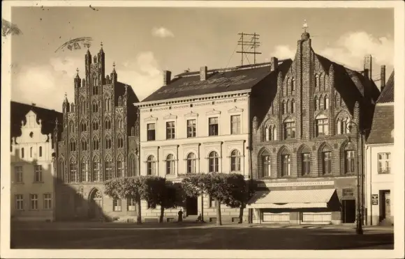 Ak Hansestadt Greifswald, Alte Häuser am Markt