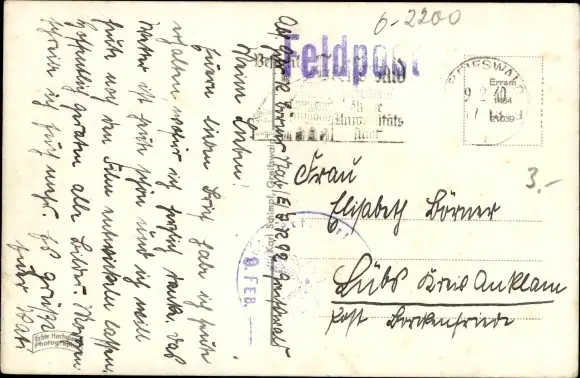 Zustand, siehe Scan, gelaufen, 1940 - ca 14 cm X 9 cm