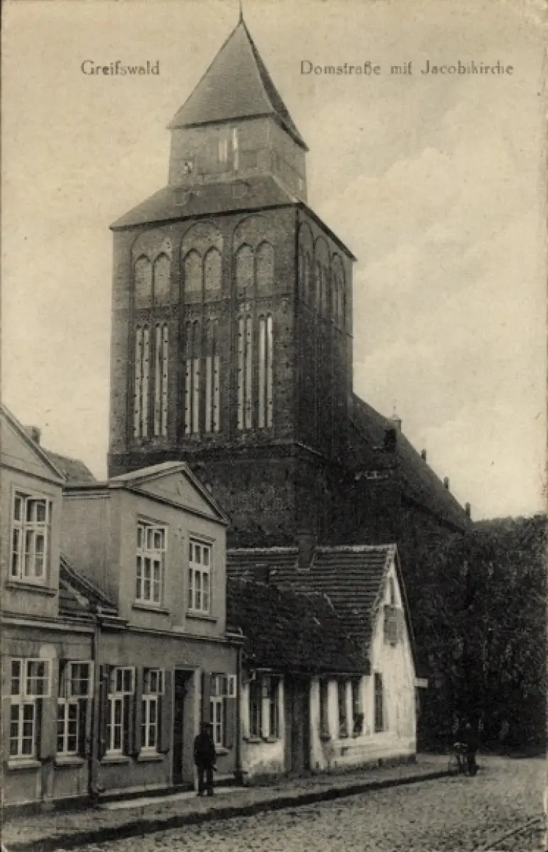 Ak Hansestadt Greifswald, Domstraße, Jacobikirche, Architektur
