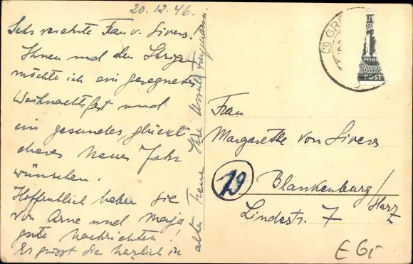 Zustand, siehe Scan, gelaufen, 1946 - ca 9 cm X 14 cm