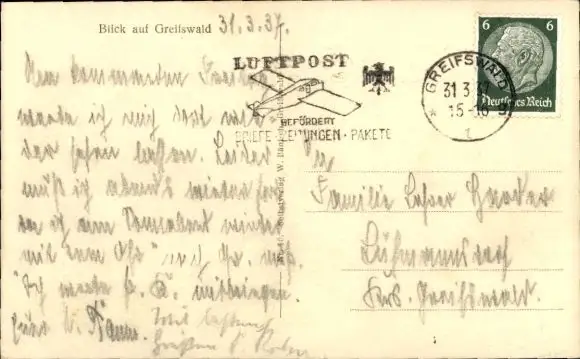 Zustand, siehe Scan, gelaufen, 1937 - ca 5 cm X 3 cm