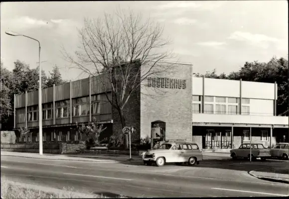 Ak Hansestadt Greifswald, HO-Gaststätte Boddenhus, Autos