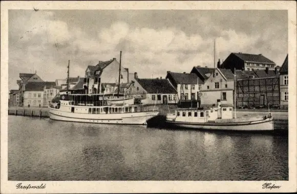 Ak Hansestadt Greifswald, Hafen, Dampfer