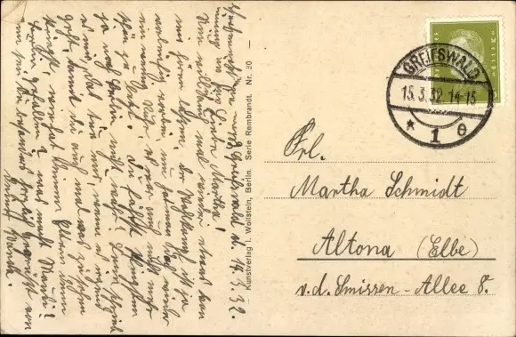 Zustand, siehe Scan, gelaufen, 1932 - ca 14 cm X 9 cm