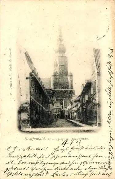 Ak Hansestadt Greifswald, Hunnenstraße, Nikolaikirche