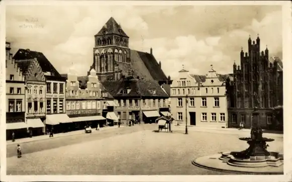 Ak Hansestadt Greifswald, Markt, Giebelhäuser, Kirche