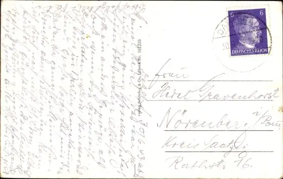 Zustand, siehe Scan, gelaufen, 1943 - ca 14 cm X 9 cm
