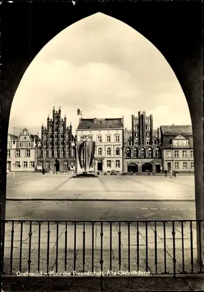 Ak Hansestadt Greifswald, Platz der Freundschaft, Alte Giebelhäuser