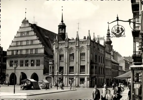 Ak Hansestadt Greifswald, Rathaus, Marktstände