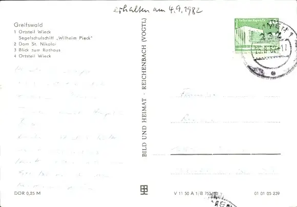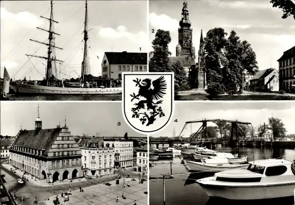 Ak Hansestadt Greifswald, Segelschulschiff Wilhelm Pieck, Dom St. Nikolai, Rathaus, Wieck