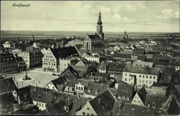 Ak Hansestadt Greifswald, Teilansicht, Kirche