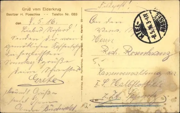 Zustand, siehe Scan, gelaufen, 1916- Inh. H. Poeschke - ca 14 cm X 9 cm