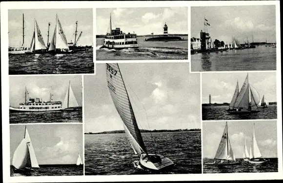 Ak Hansestadt Kiel, Kieler Förde, Leuchtturm, Segelboote, Fähren