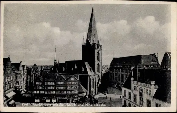 Ak Hansestadt Kiel, Markt, persianische Häuser und Nikolaikirche