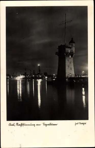 Ak Hansestadt Kiel, Nachtstimmung am Signalturm