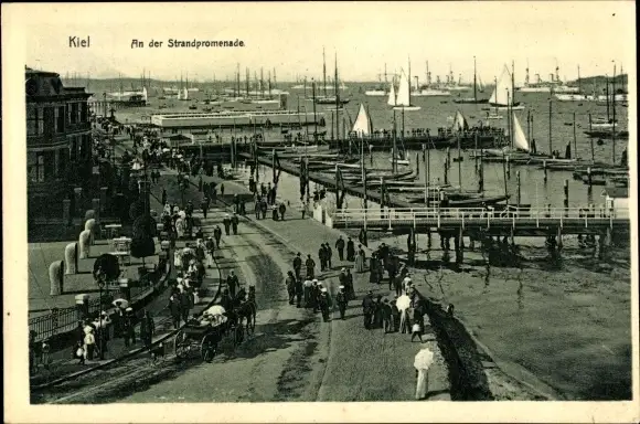 Ak Hansestadt Kiel, Strandpromenade, Segelboote, Steg