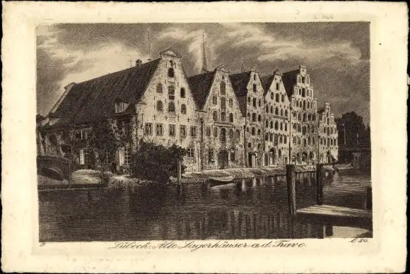 Ak Hansestadt Lübeck, Alte Lagerhäuser an der Trave