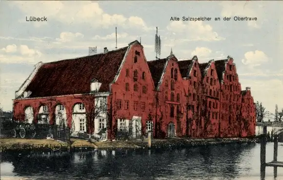 Ak Hansestadt Lübeck, Alte Salzspeicher an der Obertrave