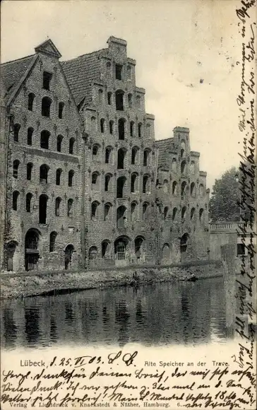 Ak Hansestadt Lübeck, Alte Speicher, Trave