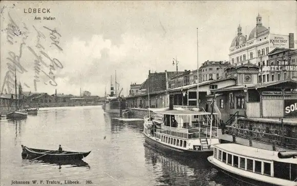 Ak Hansestadt Lübeck, Am Hafen, Schiffe