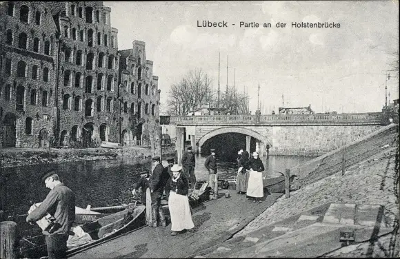 Ak Hansestadt Lübeck,An der Holstenbrücke, Anlegestelle, Boote