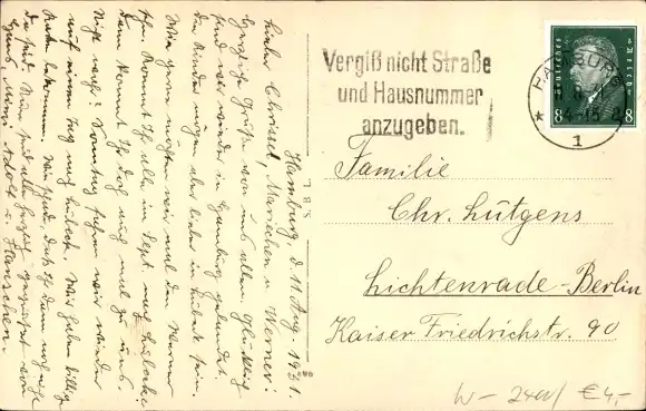 Zustand, siehe Scan, gelaufen, 1931 - ca 9 cm X 14 cm