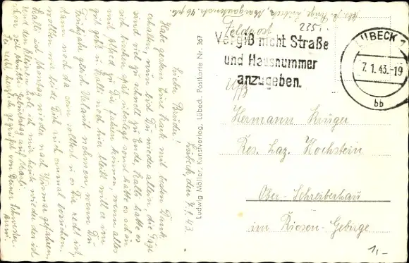 Zustand siehe Scan, gelaufen, 1943 - ca 14 cm X 9 cm