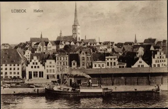 Ansichtskarte, Postkarte, Hafen, Schiffe, Boote, Dampfer, Boot