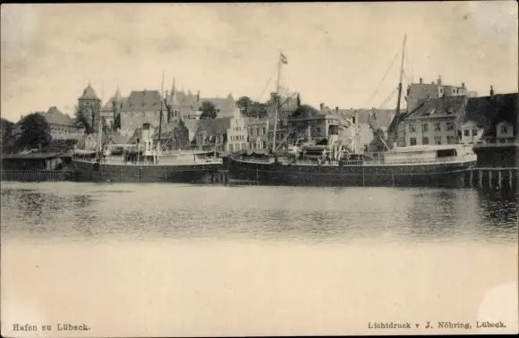 Ansichtskarte, Postkarte, Hafen, Schiffe, Boote, Dampfer, Boot