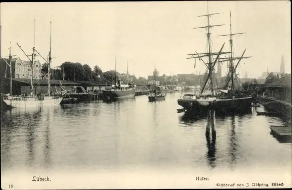 Ak Hansestadt Lübeck, Hafen, Segelschiff