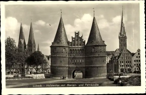 Ak Hansestadt Lübeck, Holstentor, Marienkirche, Petrikirche