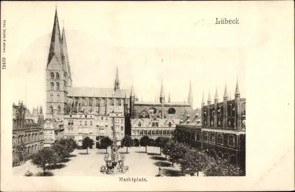 Ak Hansestadt Lübeck, Marktplatz, Kirche
