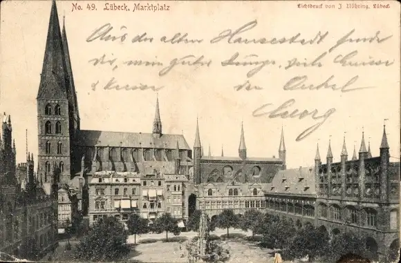 Ak Hansestadt Lübeck, Marktplatz, Kirche