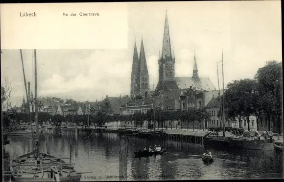Ak Hansestadt Lübeck, Obertrave, Ruderboote, Kirche