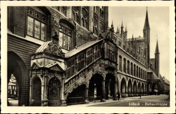 Ak Hansestadt Lübeck, Rathaustreppe