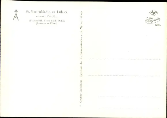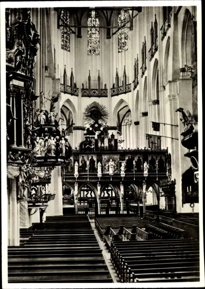 Ak Hansestadt Lübeck, St. Marienkirche, Innenansicht, Mittelschiff, Kanzel