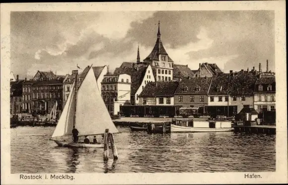Ak Hansestadt Rostock, Hafen, Segelboot