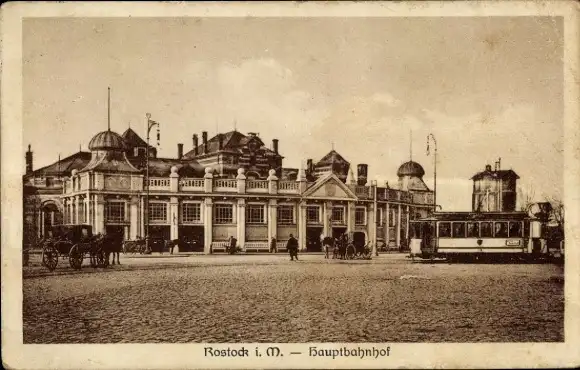 Ak Hansestadt Rostock, Hauptbahnhof, Straßenbahn