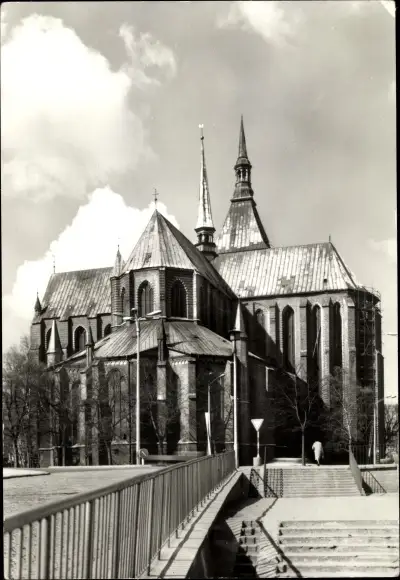Ak Hansestadt Rostock; Kirche St. Marien, Ostseite